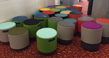 New Library Buoys January 22, 2016 Over winter intersession, the UC Merced Library acquired 25 new, very colorful Buoy style stools to provide additional seating options for library users. The Buoys have a playful contemporary design that encourages movement and activity but perhaps more importantly, they are portable! Each one weighs just under 20 pounds, so move them around to create your own study or collaborative work area. The Buoys can be found on the top 3 floors of the Library. |