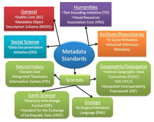 This infographic provides a quick visual overview of different metadata standards by discipline: