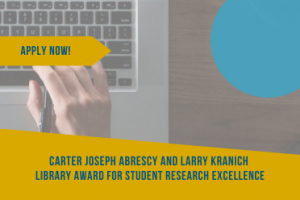 We are kicking off the Carter Joseph Abrescy and Larry Kranich Library Award for Student Research Excellence for 2025-2026 with a call for applications.