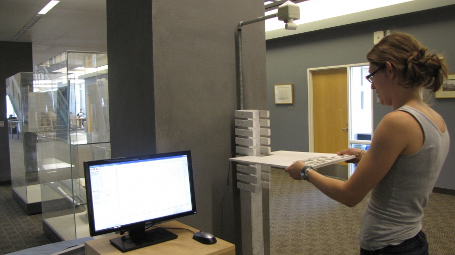 CZO Outreach Coordinator Erin Stacy demonstrates her interactive snow depth sensor
