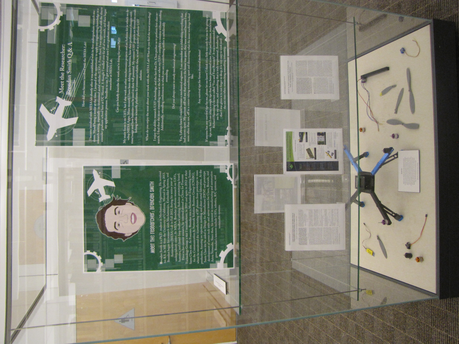 UC Merced Library and Downtown Life Magazine (DLM) have partnered to produce an ongoing exhibit series inspired by the DLM’s UCM Lab Tour stories. In this particular exhibit, you will learn about the Mechatronics, Embedded Systems and Automation (MESA) Lab. The MESA lab was founded in 2012 by UCM Engineering faculty Dr. YangQuan Chen. This multi-disciplinary group researches a broad range of topics including unmanned aerial systems and UAV-personal remote sensing, mechatronics, and modeling and control of renewable energy system.